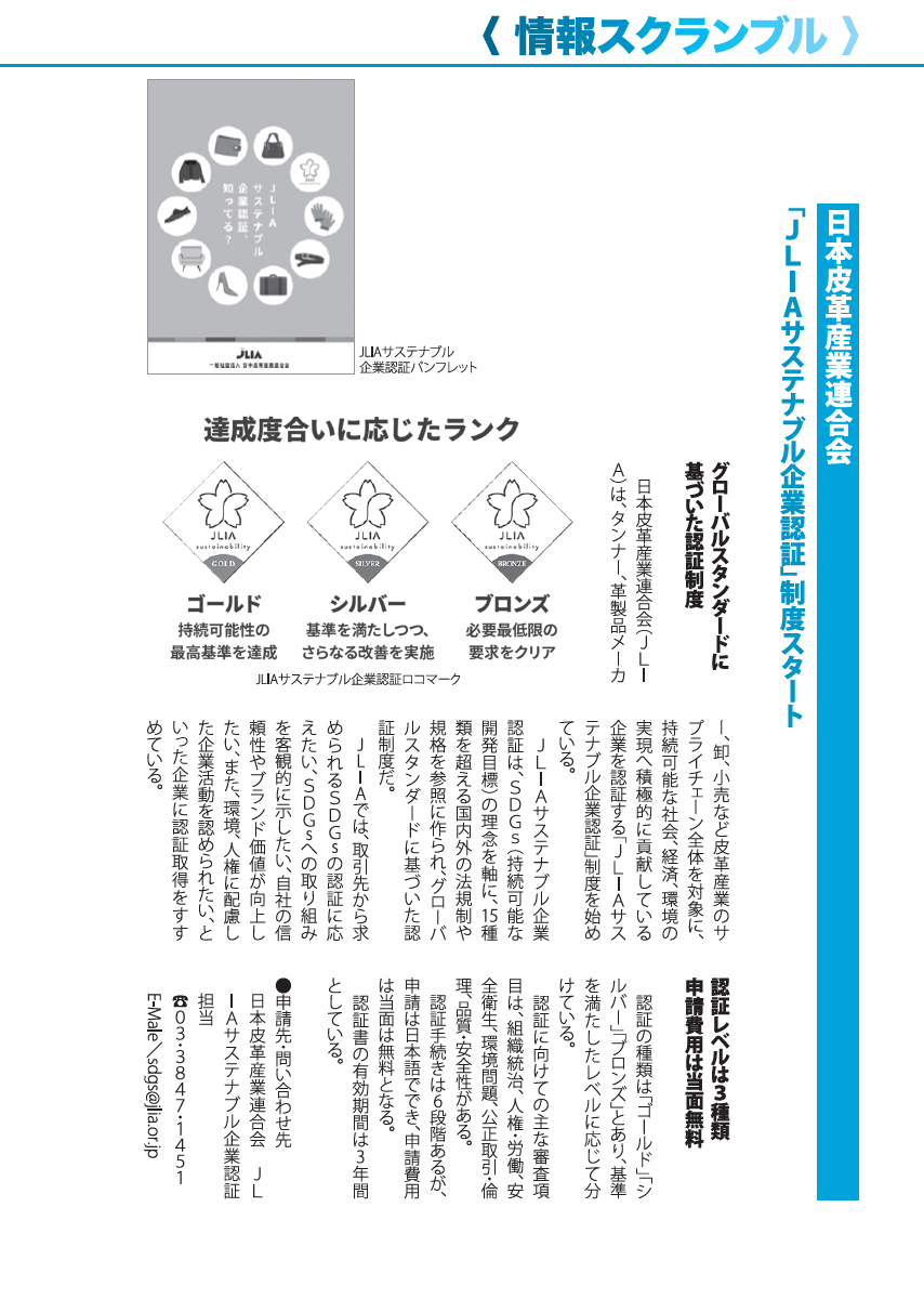 > 情報スクランブル 「JLIAサステナブル企業認証パンフレット」制度スタート