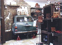 メンズ売場の顔である本物のローバーミニ。赤のジャッキもポイント。 |
