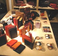 「Bスタッフ」「ボーデッサン」「クリーム」など、革の質感を追求したブランドがMDの中心。中には「イカル」「ミルプラン」といった、若いバッグデザイナー達の個性的なアイテムも導入している。ブランドごとにきちっとコーナー分けせず、それぞれの持ち味を引きたて合うような陳列演出が際立った店だ。
