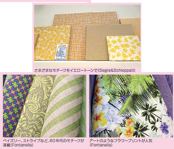 デザイン、仕上げ、モチーフに強烈さはないが、心に残る印象的な素材提案が多い。アニマルなどのモチーフは、大柄と小柄の両方が提案されている。トレンドセレクションで提案されたカテゴリー別に紹介する。